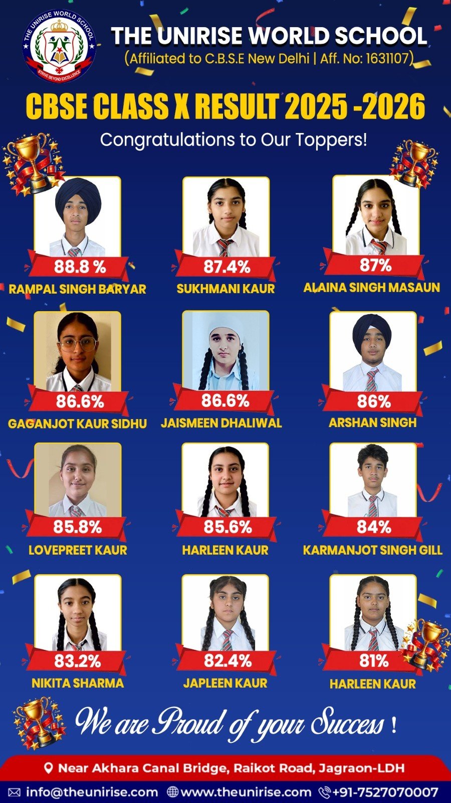 CBSE Class X Result 2025–2026 Proud moment for The Unirise World School