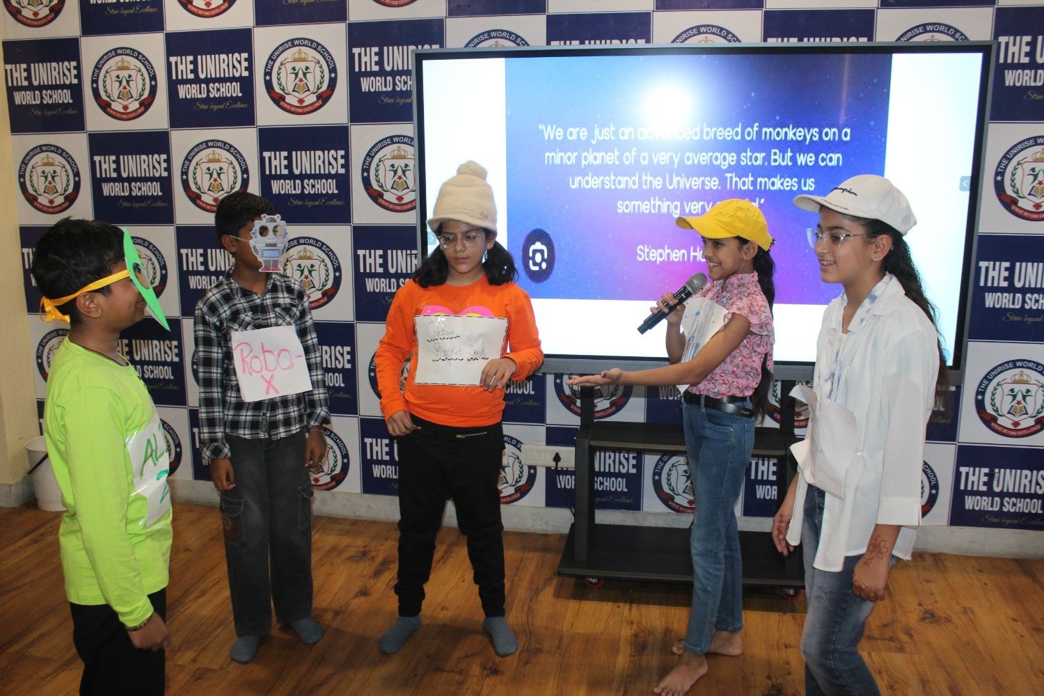THE UNIRISE WORLD SCHOOL organized an informative session on "A.I Unveiled: Transforming the Future" for grades 6 to 8, providing students with a deep understanding of artificial intelligence and its applications. The Unirisers experienced and explored that AI-powered Tools Supporting students with learning disabilities, such as speech-to-text technologies and real-time translation and developing skills in areas like AI programming, data science, and robotics.