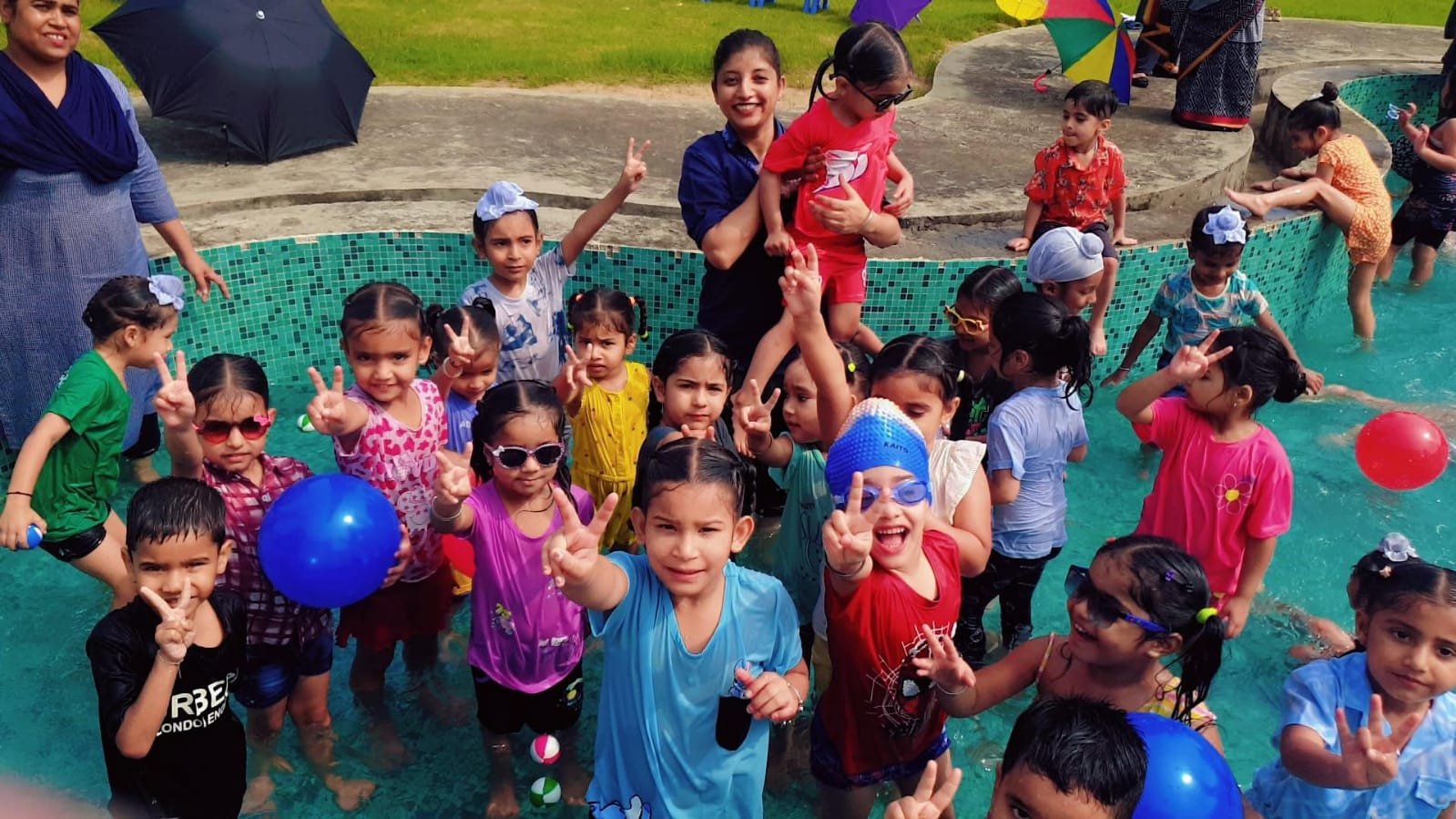 The KG Wing of The Unirise World School held a pool party for the students today.