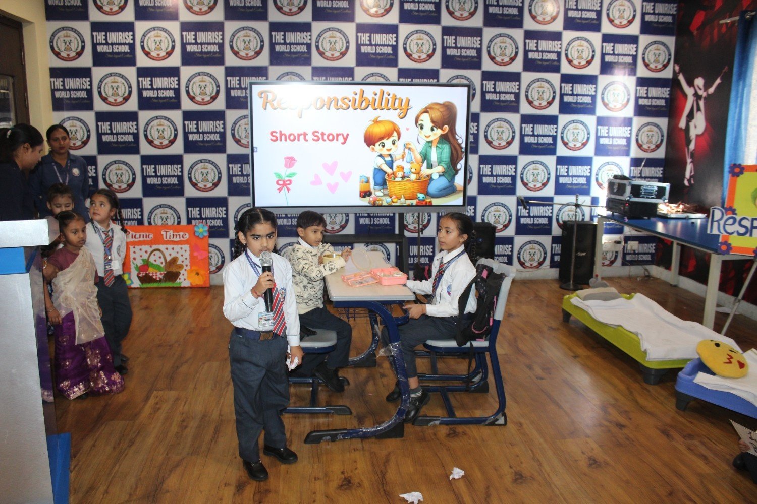 Our Kindergarten students participated in a special informative session today focused on their moral responsibilities. We discussed topics like being kind to friends, respecting elders, and the importance of honesty.