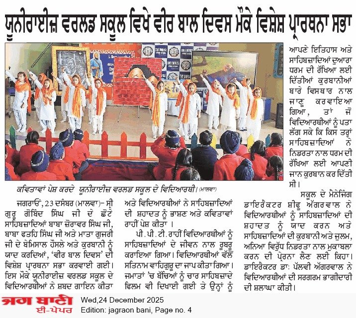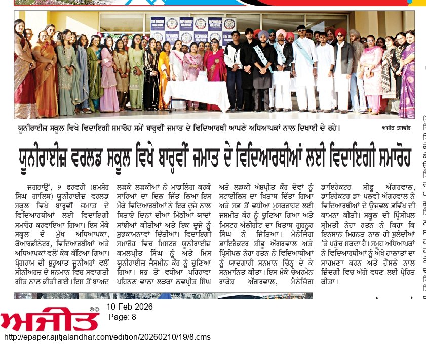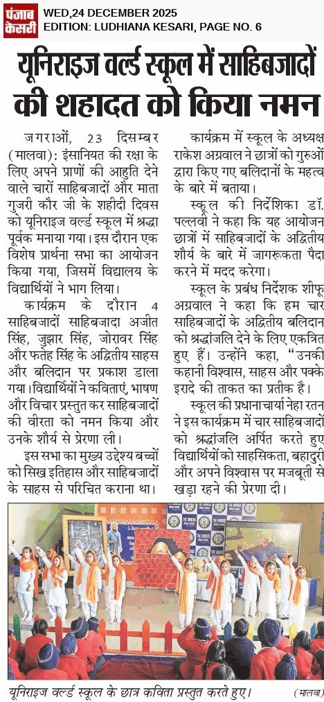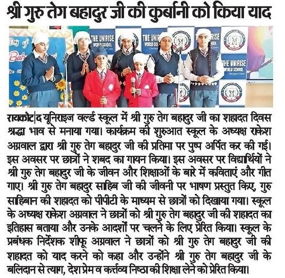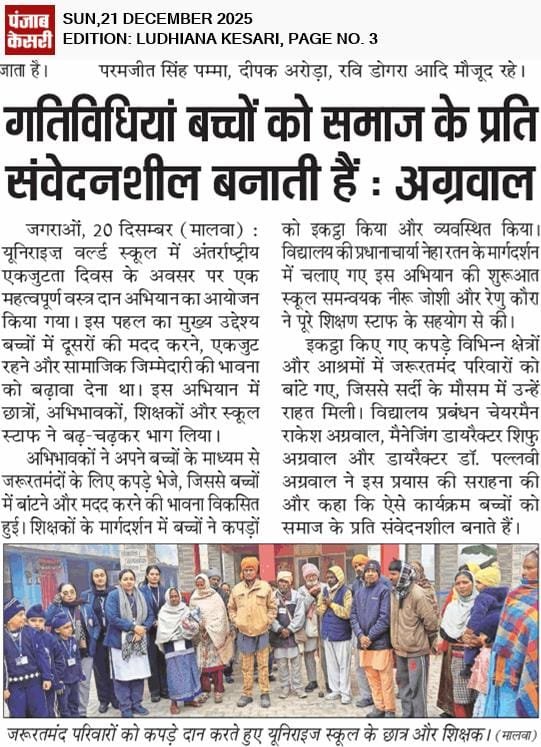The Unirise World School opens admissions for the Session 2026-27 for classes Play-way to IX and XI.( Medical,Non Medical ,Commerce and Humanities)